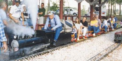 Why 1-1/2" scale? Because that size is large enough to ride on comfortably yet still small enough so we can load our trains into a pickup truck or trailer and take them to one of the many other tracks across the country.